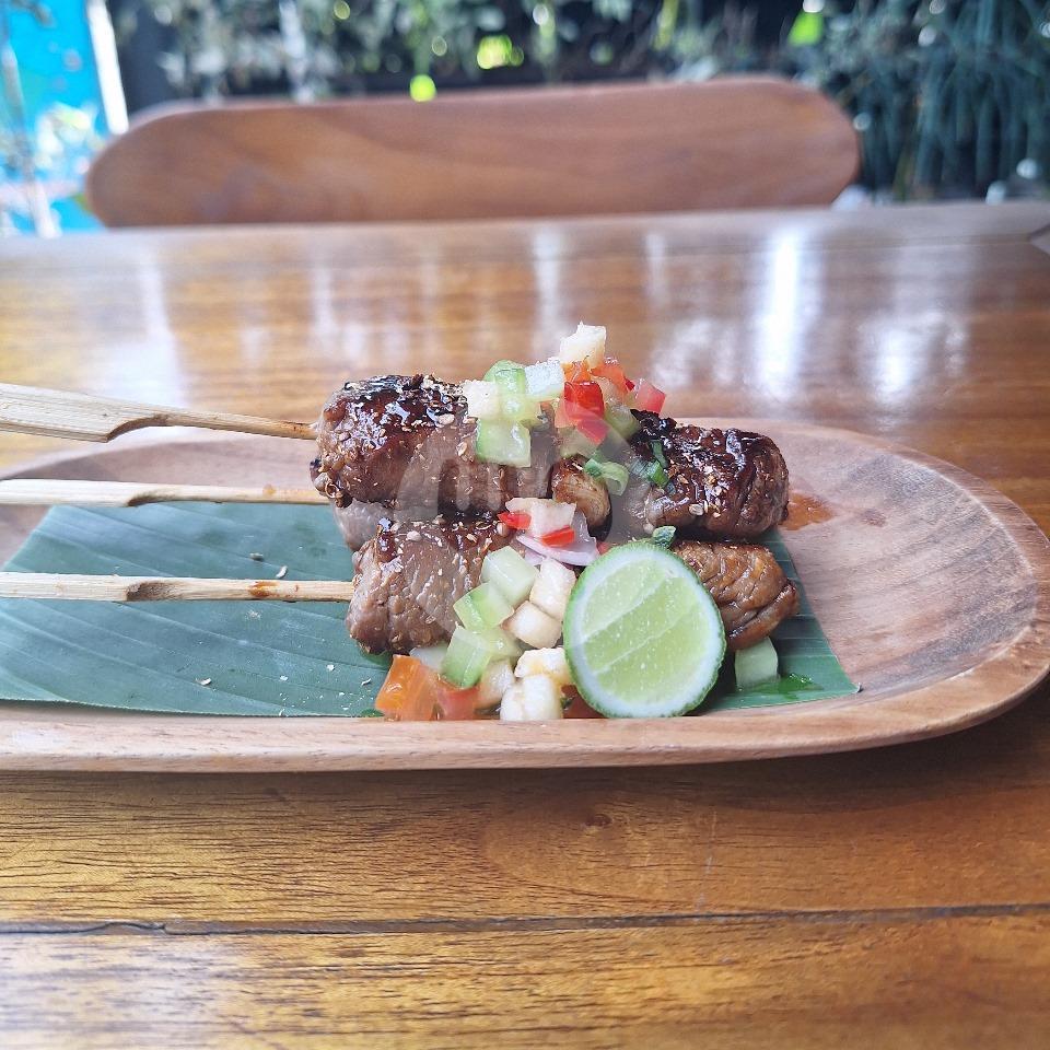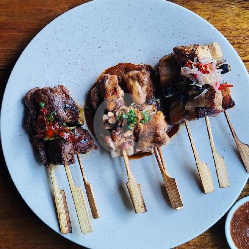 Kaboto grilled marinated tempe served with snack bean and cabbage, gulai sauce