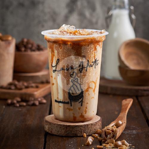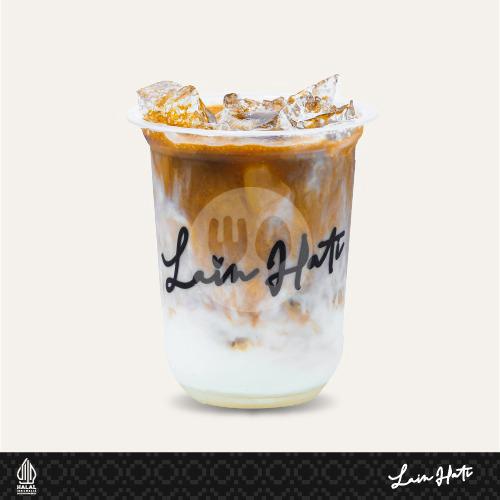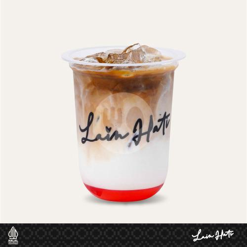 Minuman es kopi susu spesial dari hati! Dibuat dengan espresso, susu, krimer dan gula aren