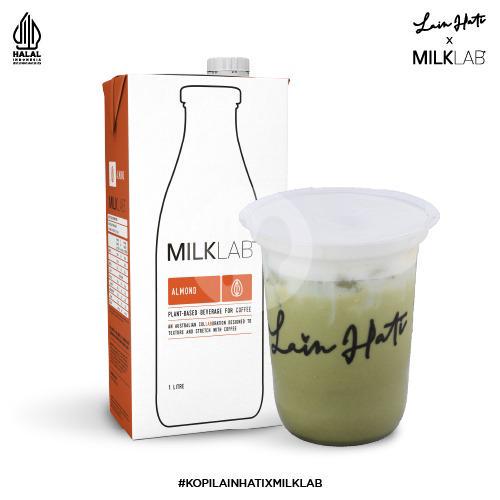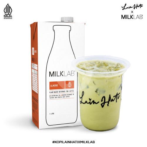 Ceremonial matcha dengan susu almond milklab