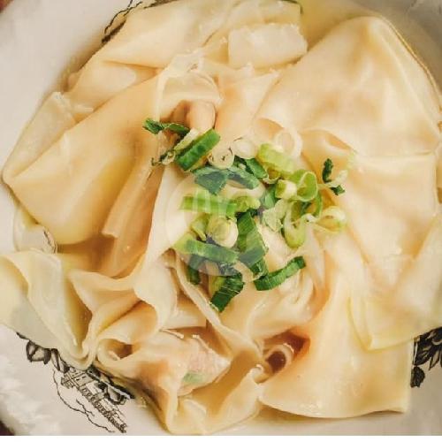 Pangsit Rebus Dengan Kuah Kaldu Dan Sawi
