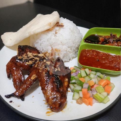 2 sayap panggang pedas manis + nasi + acar kerupuk + exstra sambal