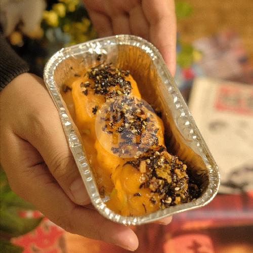 Dimsum ayam yang dibaluri saus mentai dan topping nori