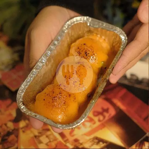 Dimsum ayam yang dibaluri saus mentai dan topping keju