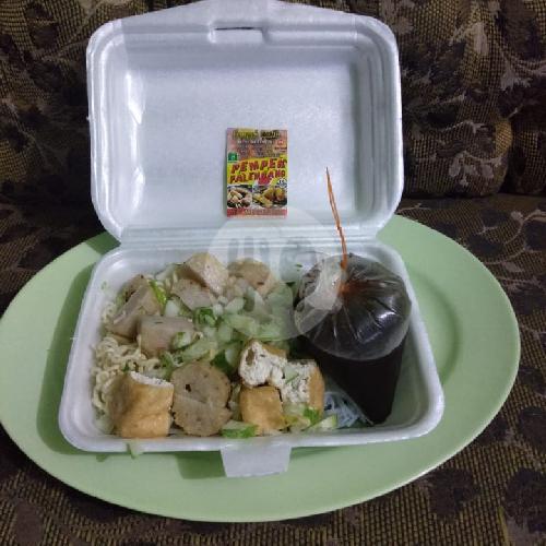 Mie Telor, Toge, Timun, Potongan Pempek , Tahu Goreng Dan Kuah Cuka