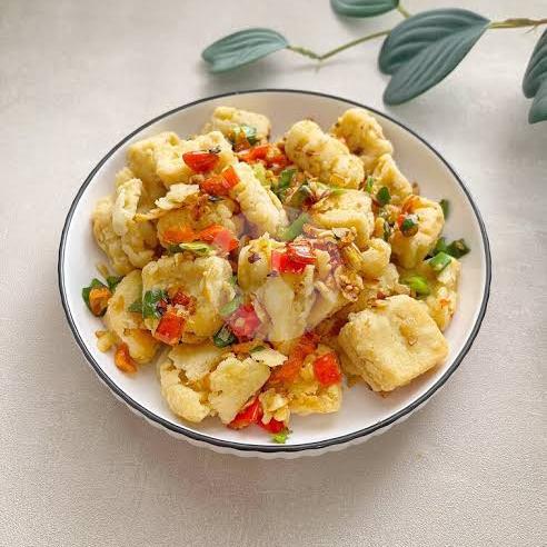 12 Potong Tahu Goreng Krispi Bumbu Cabe Iris Kering Aroma Bawang Putih.