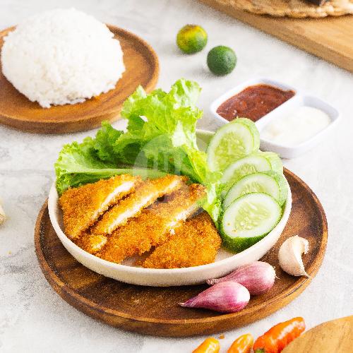 Fried chicken dengan tanpa tulang dengan daging yg juicy dan kulit yg crispy