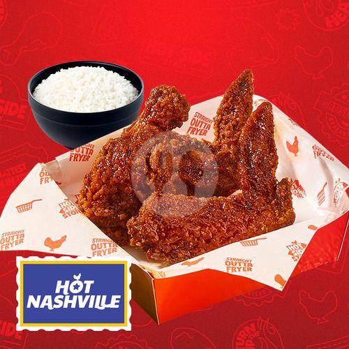 3 pcs sayap ayam Goreng saos Hot Nashville + 1 Nasi + 1 Sweet Tropical Drink