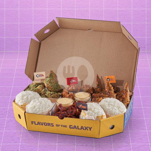 (untuk sharing) 10pcs Korean Chicken Wings + 2 porsi Pop Corn Chicken (Boneless) + 4 Nasi + 2 Toppings
