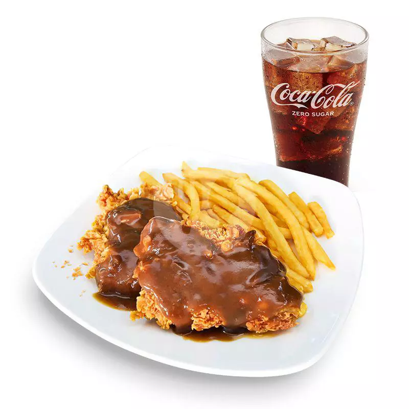 1 Pc Chicken + 1 Rice + 1 porsi Chicken Strips + 1 Mocha Float
