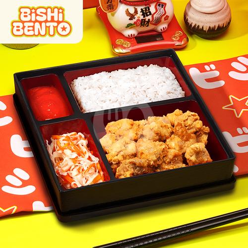 Chicken Karage Bento, karage ayam renyah. Disajikan dengan nasi dan salad.