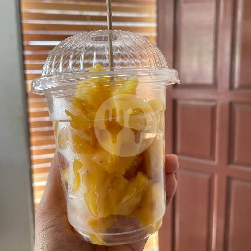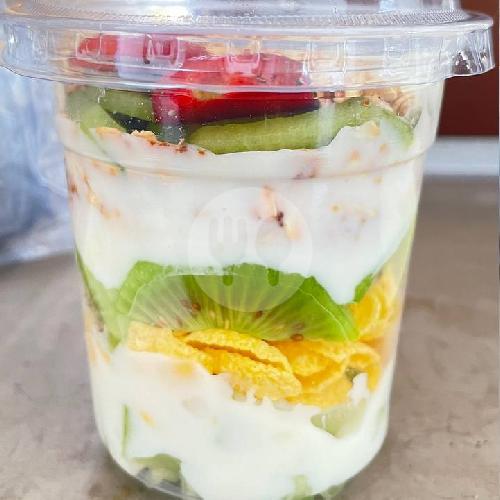 Isi : Aneka Buah-buahan,Natadecoco,keju,cornchips. Dengan Base Dressing Yougurt