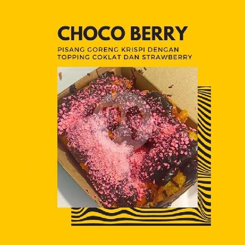Pisang goreng krispi dengan topping coklat dan strawberry, DIBIKIN DADAKAN.