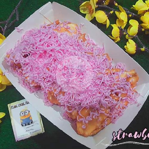 Pisang Goreng Crispy Bertopping Parutan Strawberry, DIBIKIN DADAKAN.