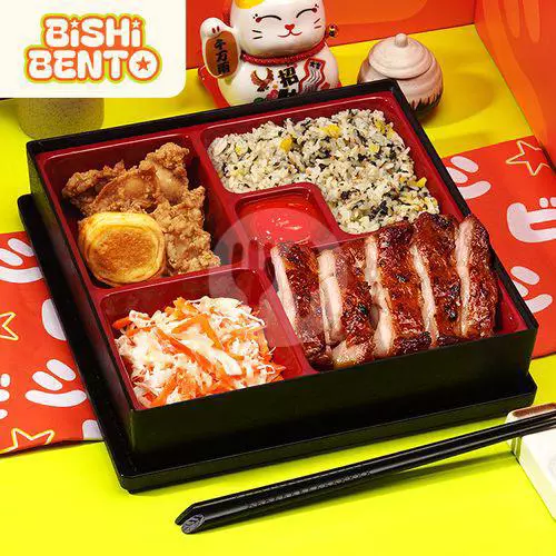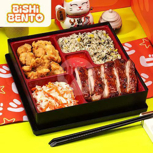 Males makan yang itu-itu aja? Bikin hari mu menyenangkan dengan makan Bishi Bento! Banyak pilihan makanan yang gurih, juicy dan nikmat bikin momen makan mu jadi nggak gitu-gitu aja!