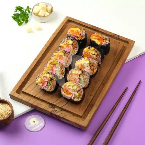Smoked Beef Cheese Kimbab (1/2 porsi) - Scramble Yubu - Hot BBQ Yubu - Bulgogi Yubu.