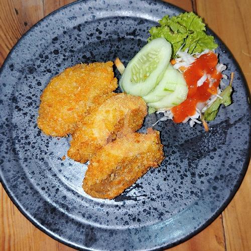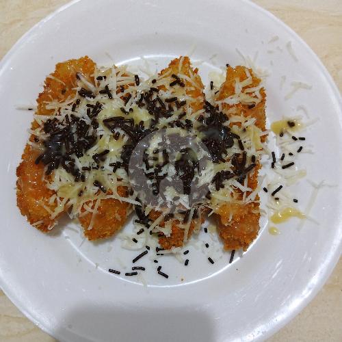 Pisang goreng katsu renyah, keju, cokelat manis ,dan susu kental manis dengan merata