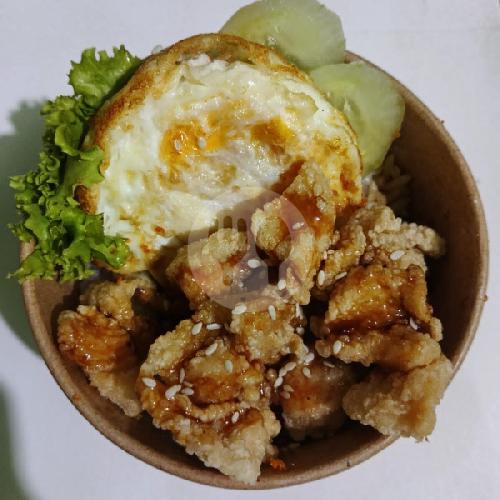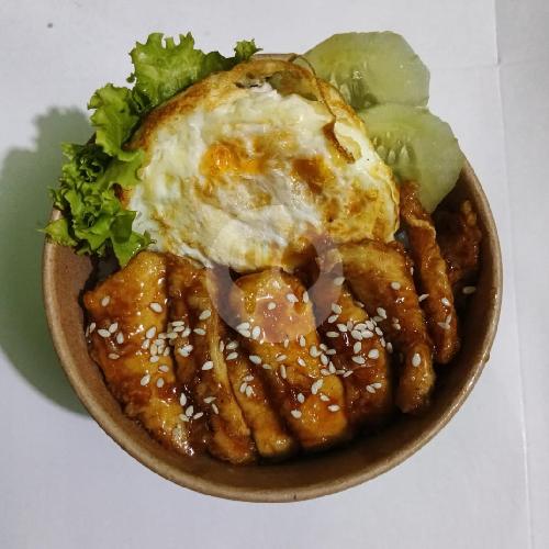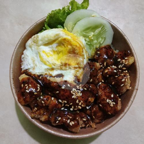 nasi + salad sayur + telor + ayam teriyaki