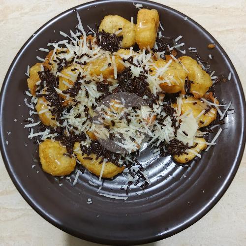Pisangan goreng renyah dengan keju parut dan taburan cokelat manis di tambah dengan susu kental manis yang nikmat