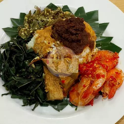 Nasi Padang, Daun Singkong, Gulai Nangka, Kuah Gulai, Bumbu Rendang, Sambel Ijo, Udang Goreng Cabe Merah.