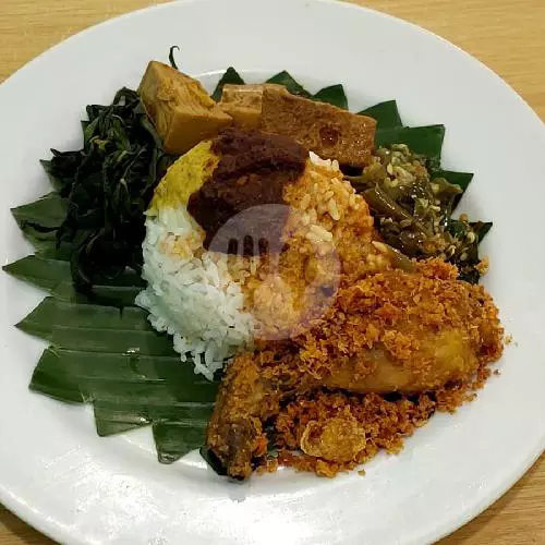Nasi Padang, ayam kremez, gulai nangka, daun singkong, kuah gulai, sambel ijo, bumbu rendang.