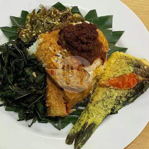 Nasi Padang, Ayam Bakar, Gulai Nangka, Daun Singkong, Kuah Gulai, Sambel Ijo, Bumbu Rendang.