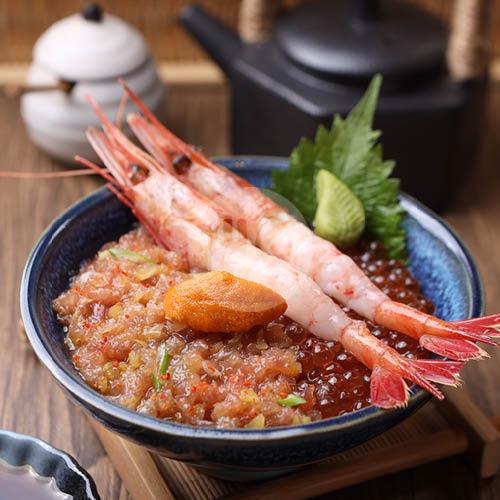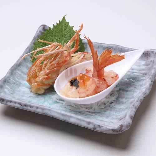 Fresh Ebi, Ebi Tempura Roll, Avocado, Kyuri, Tobiko, Goma Sauce