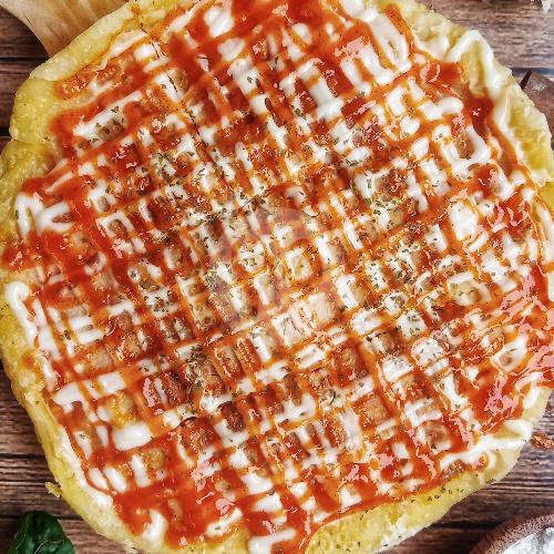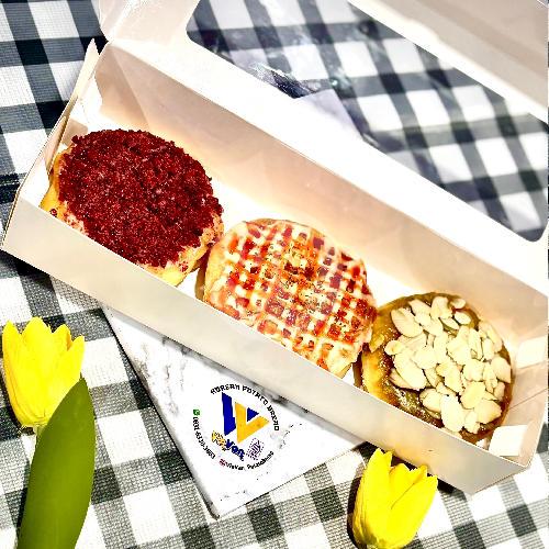 Potato Bread dengan isi keju cheddar, kentang yang di haluskan, krim keju dan keju mozzarella. Dengan Pilihan 4 topping berbeda