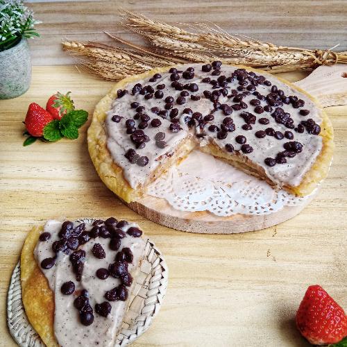 Potato bread dengan isi keju cheddar, kentang yang di haluskan, krim keju dan keju mozzarella. Dengan topping tiramisu