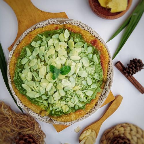 Potato Bread dengan isi keju cheddar, kentang yang di haluskan, krim keju dan keju mozzarella. Dengan Topping Matcha Almond