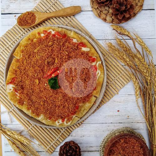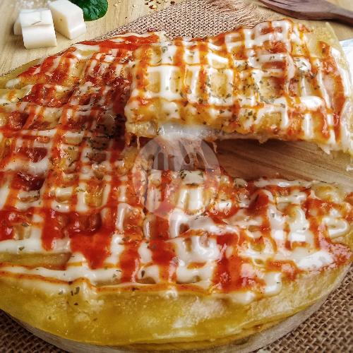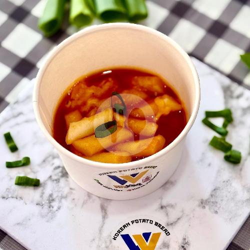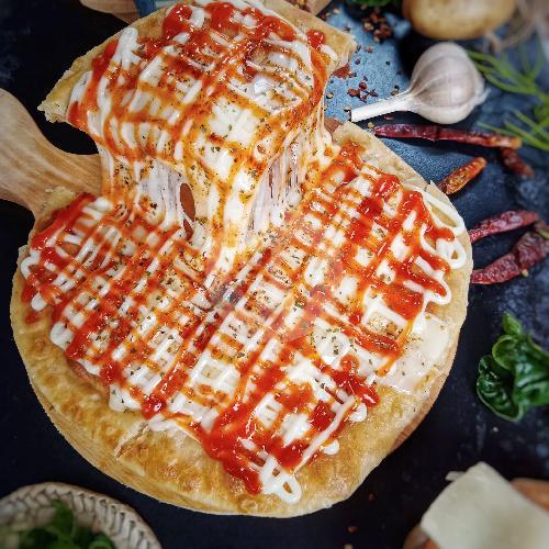 Potato Bread dengan isi keju cheddar, kentang yang di haluskan, krim keju dan keju mozzarella. Dengan Tambahan slice beef dan saus pedas di dalamnya