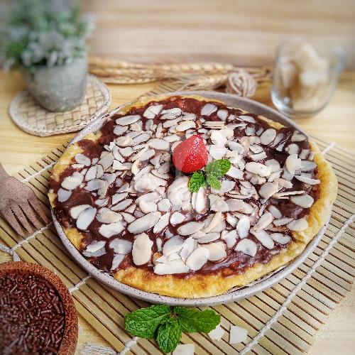 Potato Bread dengan isi keju cheddar, kentang yang di haluskan, krim keju dan keju mozzarella. Dengan Topping Choco Almond