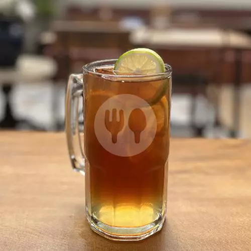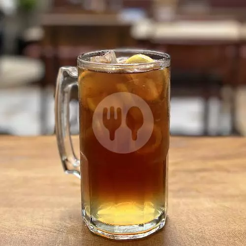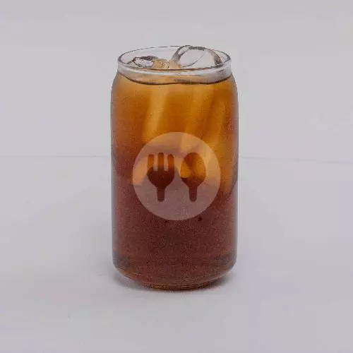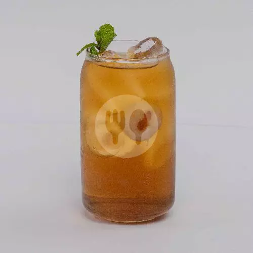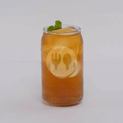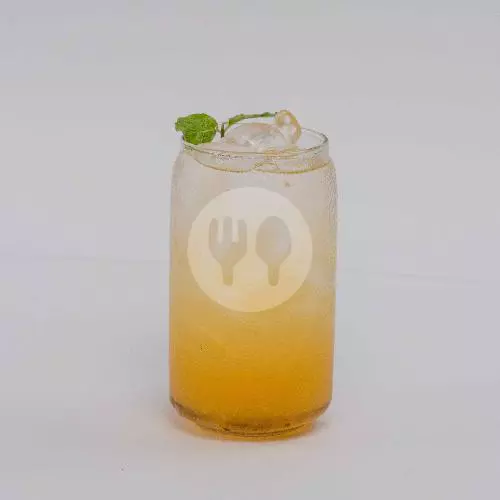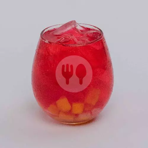 Minuman Bersoda dengan Sirup Fruit Punch dan Tambahan Buah Peach