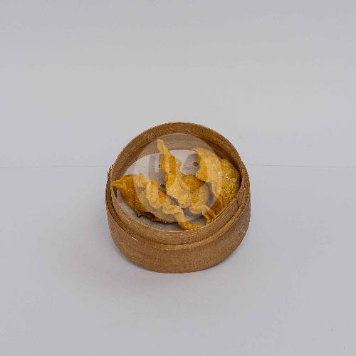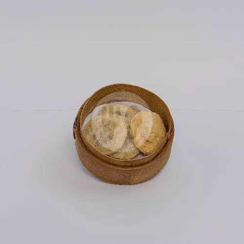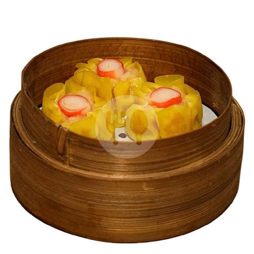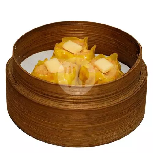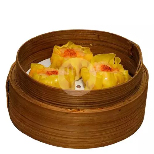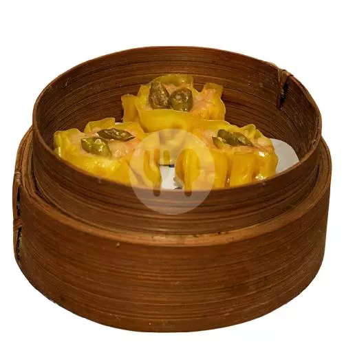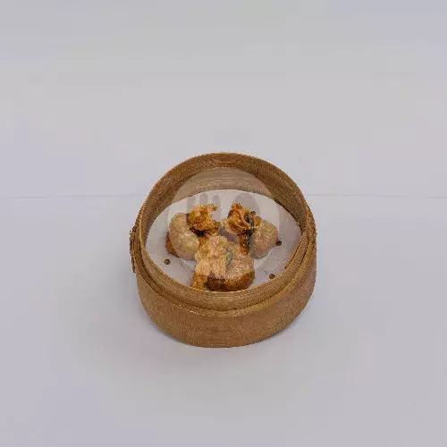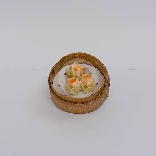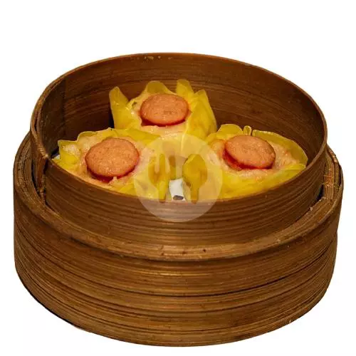 Olahan ayam dan udang yang dibungkus dengan kulit pangsit dan dikukus