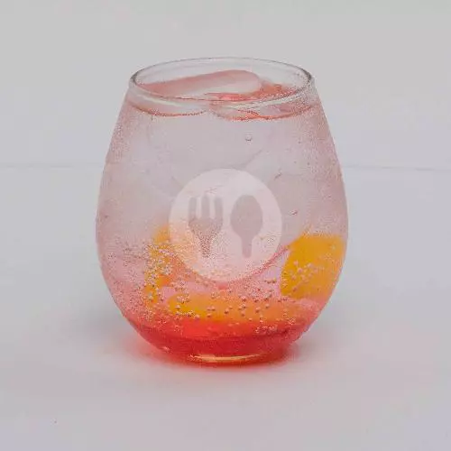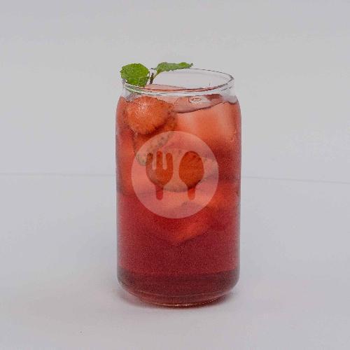 Minuman Bersoda Rasa Strawberry dengan Tambahan Cocktail Fruit Dan Lemon Juice