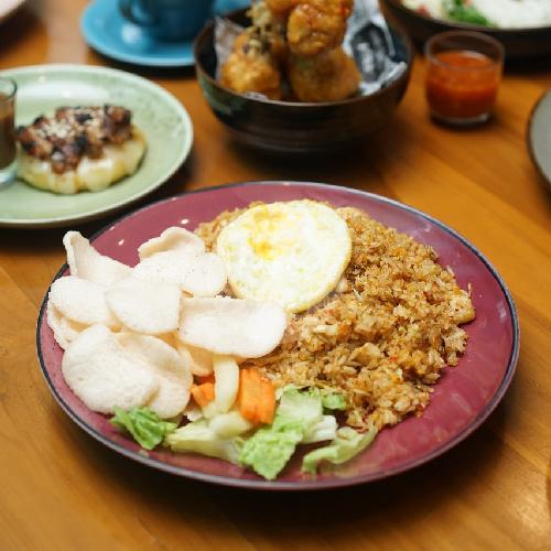 Nasi Goreng Ala Jawa Dilengkapi Dengan Telur, Kerupuk Dan Acar