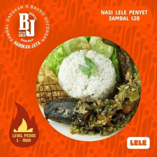 Lele Penyet + Nasi + Lalapan Segar + Sambal Penyet Ijo Dadakan Pedas Special