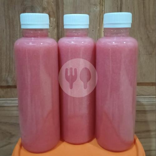 jus jambu yang akan kaya vitamin c dikemas dalam botol sekali pakai dan higenis