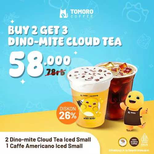 (CHARACTER CUP NAILOONG AKAN DIBERIKAN SELAMA PERSEDIAAN MASIH ADA) 2 Dino-mite Cloud Tea Iced Small + 1 Caffe Americano Iced Small