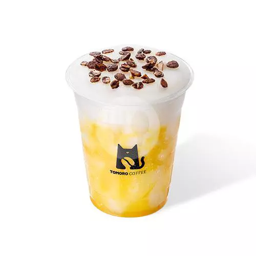 Perpaduan antara espresso dari TOMORO Blend dan Peach Puree asli, menghasilkan rasa manis yang menyegarkan.