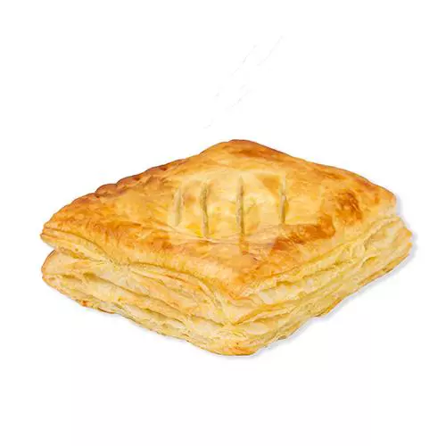 Puff berlapis yang gurih dengan potongan ayam dan bumbu lada hitam yang kuat, pas untuk camilan praktis.