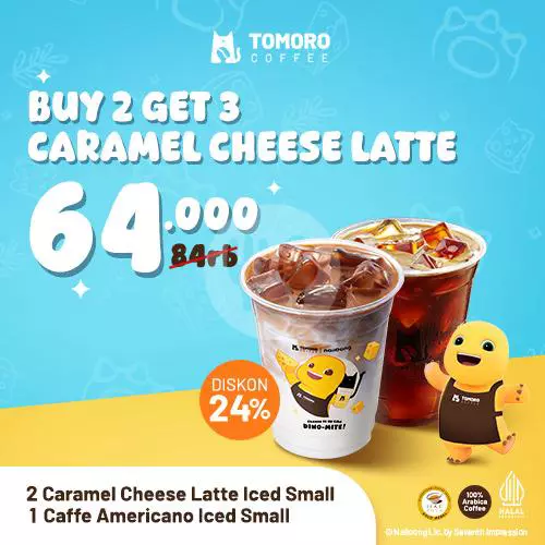 (Character cup nailoong akan diberikan selama persediaan masih ada) 2 caramel cheese latte iced small + 1 caffe americano iced small