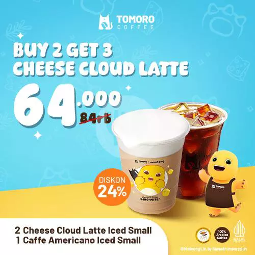(Character cup nailoong akan diberikan selama persediaan masih ada) 2 cheese cloud latte iced small + 1 caffe americano iced small