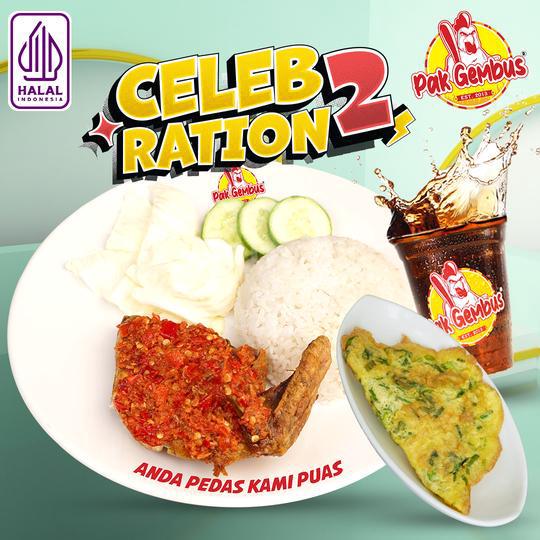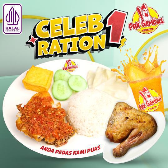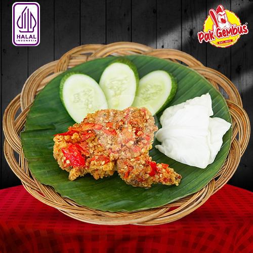 Nasi (1) + ayam original (1) + sambal (1) + lalapan (1) + telur goreng/terong goreng (1) + gembus orange/lemon tea/lychee tea/milky melon/milky choco (1)