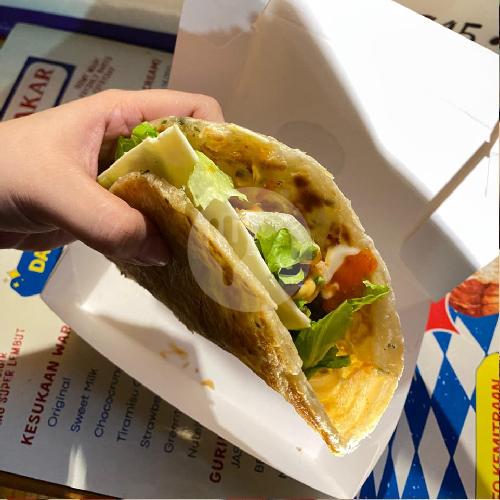 Cheese beef patty steak prattha roti gandum yang diisi oleh salad,keju slice dan beef patty yang di panggang hingga matang. Rasanya mewah gurih dan mengenyangkan sehat untuk dimakan
