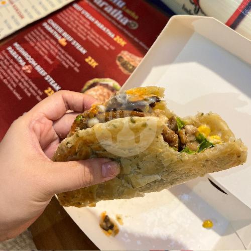 Beef Patty Steak Prattha Roti gandum yang diisi oleh salad dan Beef patty yang di panggang hingga matang. rasanya mewah gurih dan mengenyangkan Sehat untuk dimakan