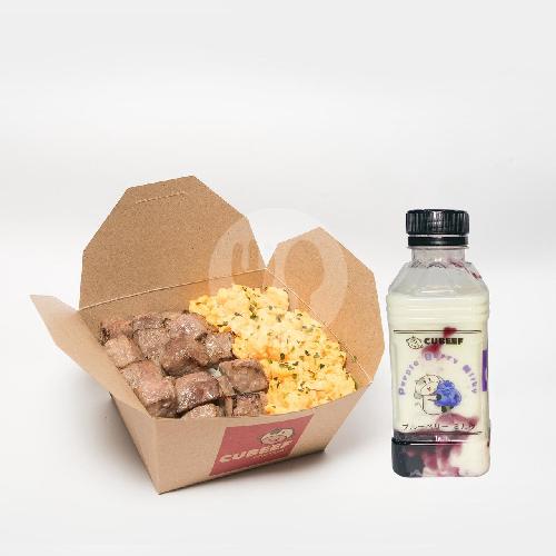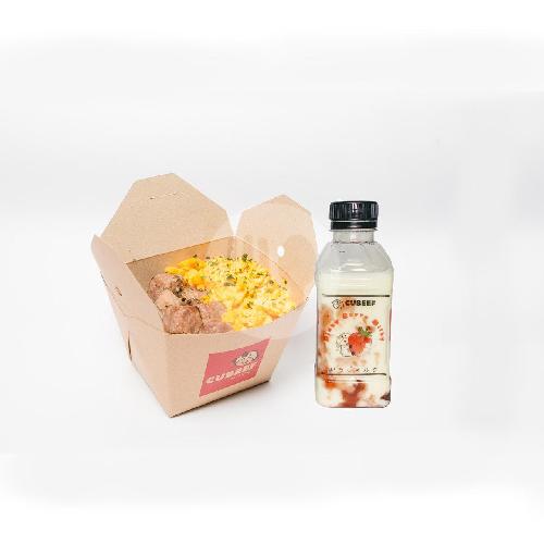 Nasi Single Portion Wagyu Cubes Dengan Bumbu Bbq Dan Scrambled Egg