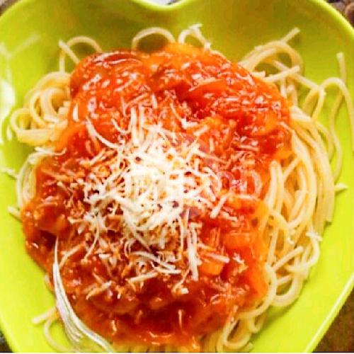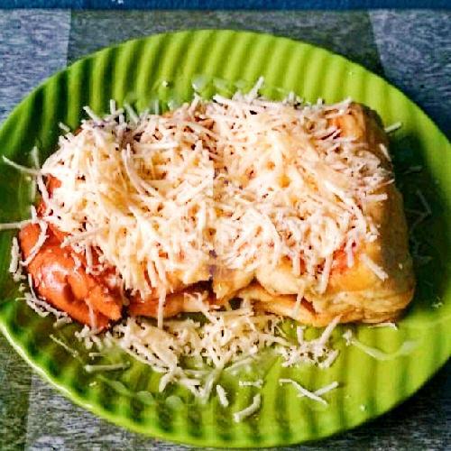 Terdiri dari ( saus tomat, daging, bawang bombay + keju)