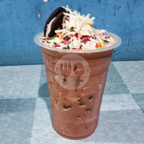 Dengan toping (boba agar biscuit oreo mesis warna keju susu)
