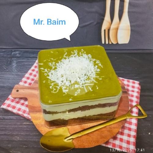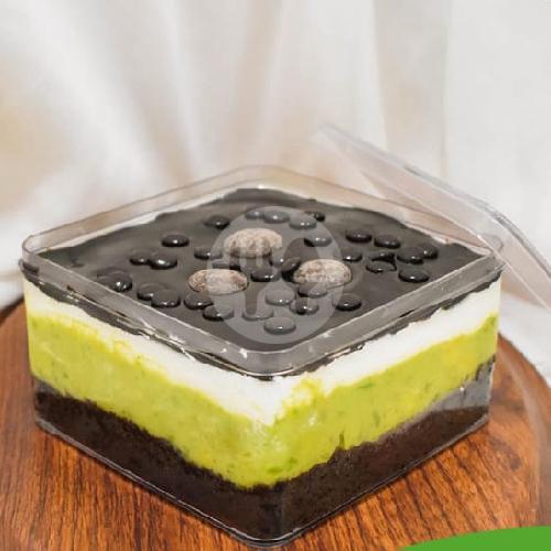 Dessert Box Dengan Base Cake Cokelat Dengan Cream Matcha di Tambah Toping Chrunchy Matcha.