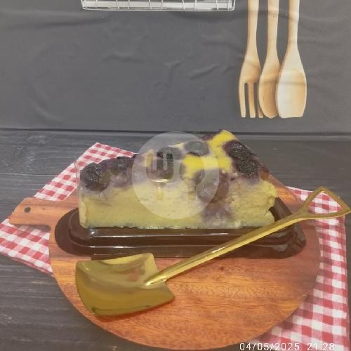 Terbuat Dari Cream Cheese Berkulitas, Telur Dan Cream Kemudian Di Oven Lalu Di Beri Toping Selai Bluebery.